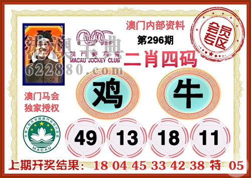 296期:〖五肖〗猪猴兔鸡狗 |